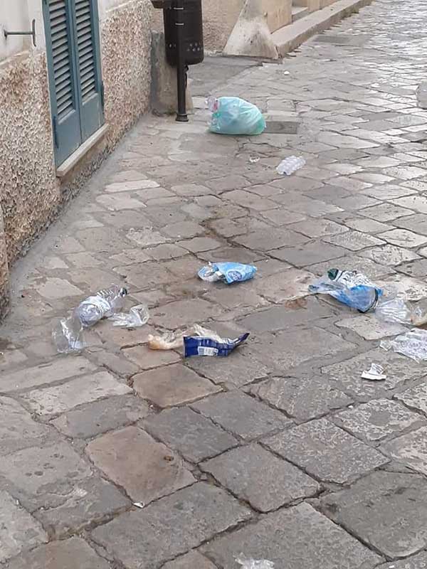 29 Luglio 2021Rifiuti sparsi sul basolato e cestini stracolmi. Alcune strade del centro storico di Galatina questa mattina si presentavano così. Una immagine indecorosa. Non sappiamo se quanto immortalato dalle nostre foto è frutto dell’azione di qualche incivile (e purtroppo sono molti) oppure di un problema nel servizio di raccolta dei rifiuti. Di certo, lo spettacolo che si è presentato davanti agli occhi degli abitanti del centro storico e dei turisti che in questi giorni desiderano scoprire le bellezze di Galatina è di degrado e sporcizia. Se si vuole avere una vocazione turistica occorre tutelare e mantenere pulito il borgo antico che è il nostro fiore all’occhiello!