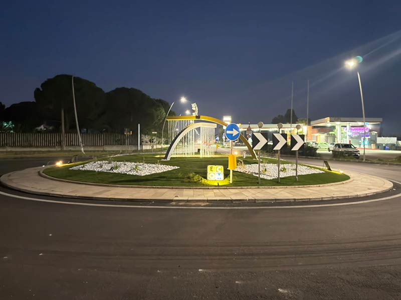 Grazie al nuovo manto stradale realizzato da Terna SpA e alla fontana completamente illuminata costruita da Ecom Servizi Ambientali Srl, la rotatoria sulla Strada Provinciale 362, all’altezza dell’azienda Calce Minermix, ha ritrovato dignità e nuova identità.