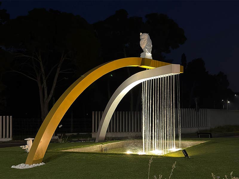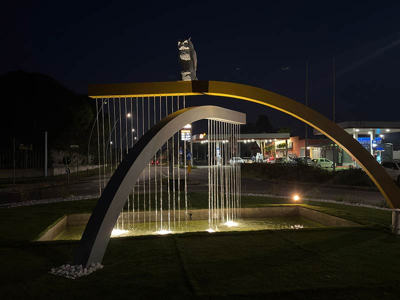 L’intervento ha trasformato un’area che in passato appariva trascurata in uno spazio curato e decoroso, capace di rappresentare un vero e proprio biglietto da visita per la città. Particolarmente significativa la fontana, impreziosita da due chiavi stilizzate e da una civetta, simboli identitari della comunità galatinese, oggi valorizzati da un moderno impianto di illuminazione che ne esalta forme e significato anche nelle ore serali.