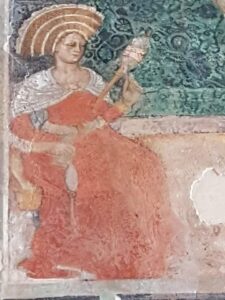Lasciamo la bellezza degli affreschi di Santo Stefano per conoscere dei dipinti meno conosciuti ma altrettanto belli. La nostra ricerca ci porta a Nociglia, in una chiesa straordinaria Santa Maria de Itri dove sveleremo la terza Fata Atropo l’inesorabile. Tagliava il filo con il coltello che riposa nella cintura, ma pronta ad usarlo quando giunge il momento di arrestare la vita.
